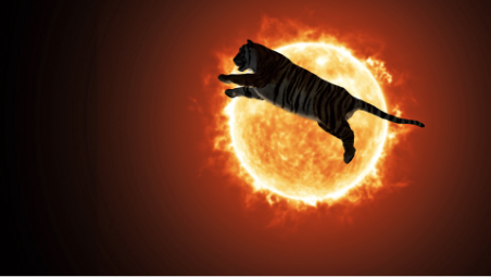 อนึ่ง ชื่อของนิทรรศการอย่าง Time & the Tiger นั้นมีที่มาจากความหลงใหลของศิลปินที่มีต่อสัตว์ที่ทรงพลังและสง่างามอย่าง เสือโคร่ง ที่สามารถสะท้อนแนวคิดเกี่ยวกับเวลาได้ ด้วยความที่ในปัจจุบันเสือโคร่งกำลังใกล้จะสูญพันธุ์ ในขณะที่ในยุคดึกดำบรรพ์ พวกมันอาศัยและเดินทางหากินอย่างเสรีไปทั่วเอเชีย โดยเฉพาะอย่างยิ่งพื้นที่ที่เชื่อมต่อกับเอเชียตะวันออกเฉียงใต้ แต่ในปัจจบัน พื้นที่ที่ว่านี้จมหายไปจากความเปลี่ยนแปลงของระดับน้ำทะเลที่มีปริมาณสูงขึ้นเรื่อย ๆ ทุกปี ส่งผลให้เสือโคร่งเหล่านี้ตกอยู่ในความเสี่ยงต่อการสูญพันธุ์ ทั้งๆ ที่มันเคยเป็นสัญลักษณ์แห่งพลังอำนาจของญี่ปุ่น ที่รุกรานภูมิภาคต่างๆ ของเอเชียตะวันออกเฉียงใต้และเอเชียตะวันออก และเชื่อมโยงกับตำนาน "เสือสมิง" เสือที่สามารถแปลงร่างเป็นมนุษย์ของมลายู ซึ่งเป็นเสมือนสะพานเชื่อมความทรงจำของมนุษย์กับบรรพบุรุษ ด้วยเหตุนี้ ศิลปินจึงมองว่าเวลาไม่ได้เดินทางเป็นเส้นตรง หากแต่เกิดขึ้นจากแหล่งกำเนิดหลากมิติ ที่ถูกหล่อหลอมซ้ำแล้วซ้ำเล่าโดยพลังทางวัฒนธรรม, ระบบนิเวศ และประวัติศาสตร์ โดยมีเสือเป็นสัญลักษณ์อันทรงพลังของความลื่นไหลและความซับซ้อนของเวลานั่นเอง