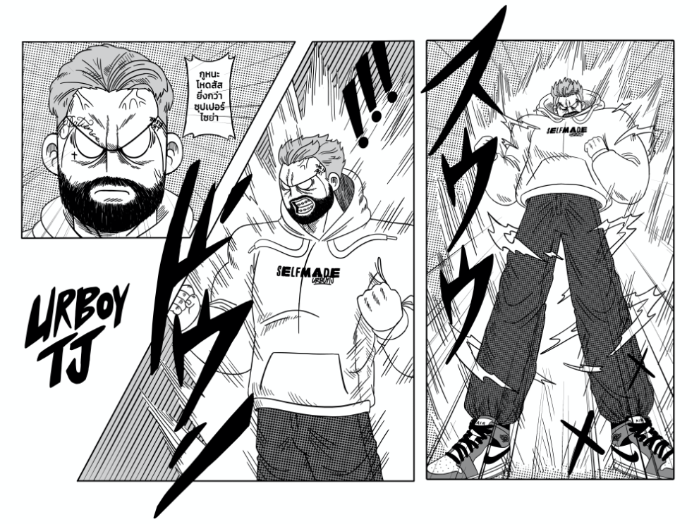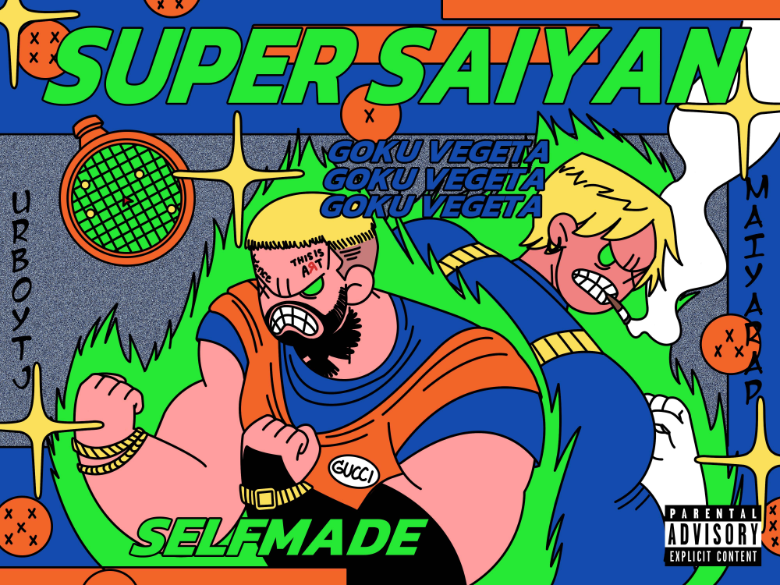 ต้องบอกว่างานนี้เป็นงานที่โชคดีมากเลยค่ะ ต้องเล่าก่อนว่านิ้งชอบผลงานของพี่เต๋า (URBOYTJ) มาตั้งนานแล้วค่ะ พอเขาปล่อยผลงานอัลบั้ม Self Made นิ้งก็เปิดฟังทันที จนไปเจอกับเพลงหนึ่งที่ชื่อว่า “ซุปเปอร์ไซย่า” พอฟังแล้วมันใช่เลย! เดือดมาก! แล้วชื่อก็ยังมาจากการ์ตูน Dragon Ball ที่ตัวเองชอบด้วย พอมาอยู่กับดนตรีแนวฮิปฮอปเลยรู้สึกว่าต้องวาดแล้วแหละ พอได้เริ่มนิ้งก็วาดไม่ยั้งเลยค่ะ ยิ่งไม่ใช่งานลูกค้าแล้วก็ใส่ความเป็นตัวเองเข้าไปเต็มที่ พอเสร็จก็โพสต์ลงไอจีแล้วแท็กพี่เต๋ากับพี่แชมป์ (MAIYARAP) พี่เต๋าเองเขาก็เห็นเลยมาคอนเมนต์และก็แชร์ลงสตอรี่ตัวเอง นิ้งก็สบายใจแล้วที่เขาได้เห็นแฟนอาร์ตของเรา